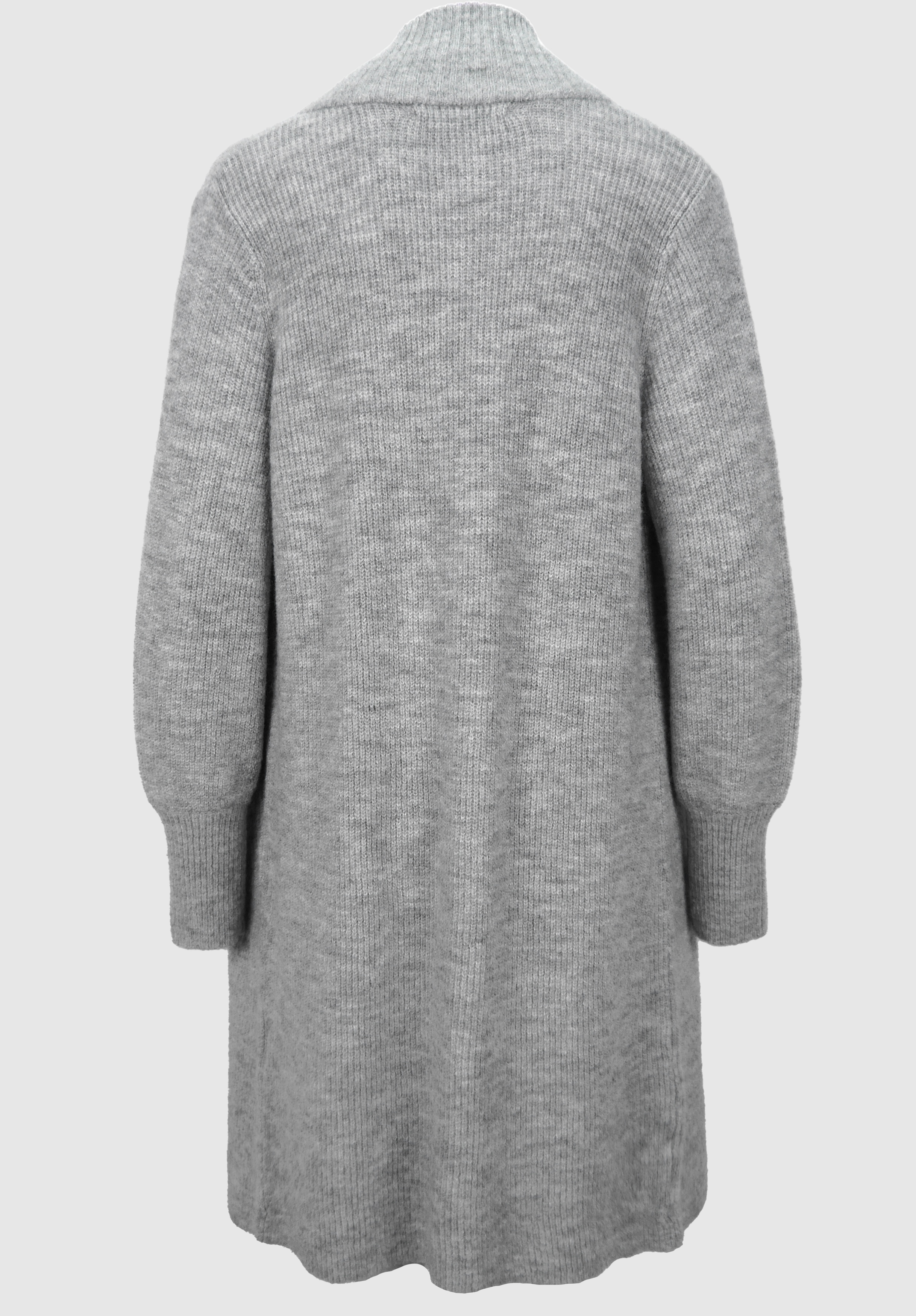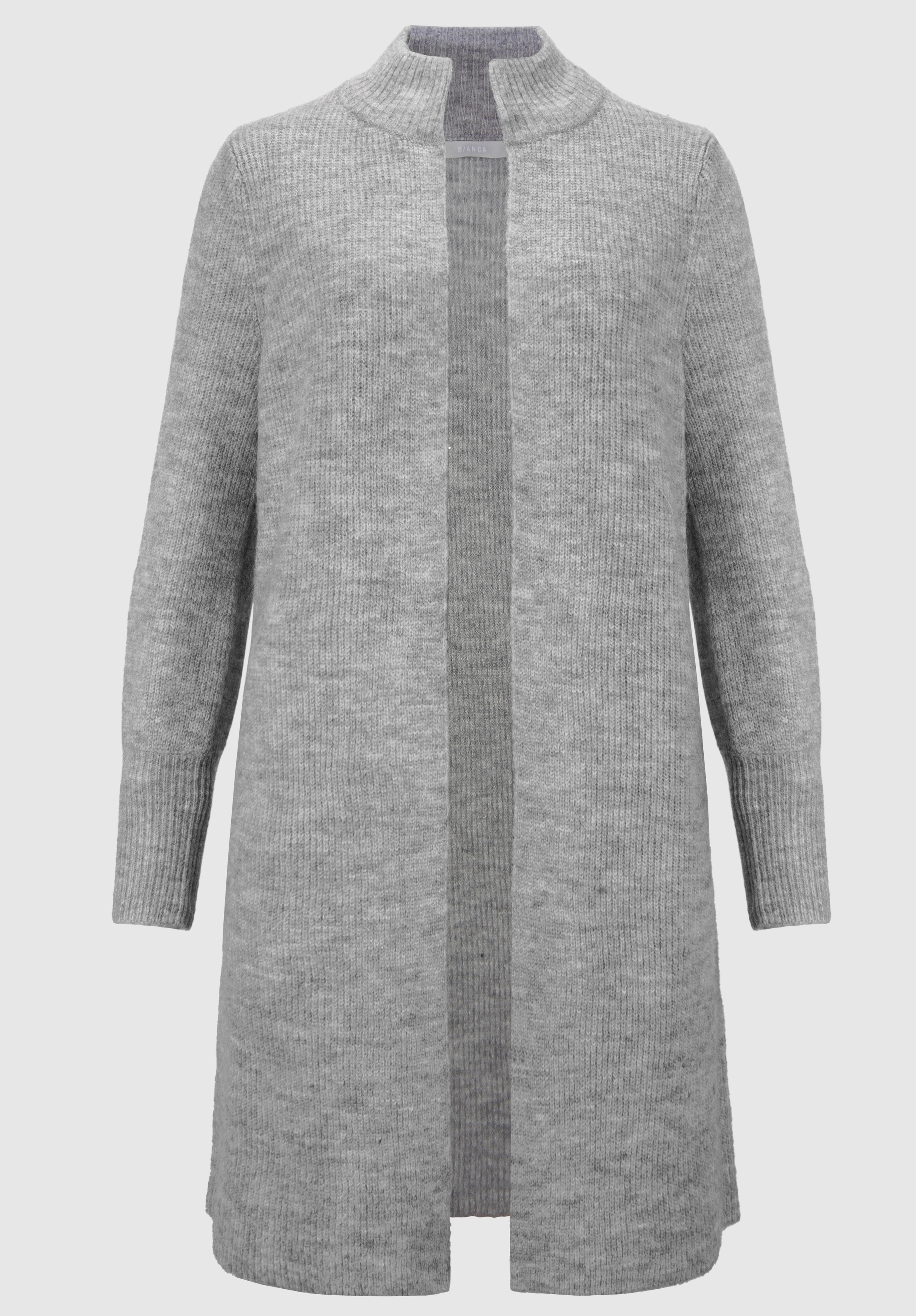 На сайте указаны российские размеры. Длинный кардиган, выполненный в модном стиле грубой вязки, не только очень приятный, но и стильный. Благодаря сочетанию мягкого материала с шерстью он кажется мягким и удобным в носке. Повседневный образ дополнен модным воротником-стойкой, широким низом рукавов и длинным свободным кроем. Длина в 44 размере около 88 см.