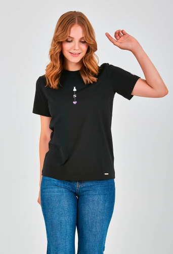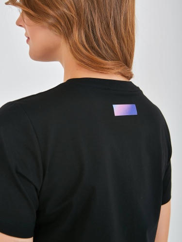 Яркая футболка средней длины прямого силуэта из легкого хлопка, мягкой вискозы и с добавлением эластана. Укороченные втачные рукава. Круглый вырез горловины.