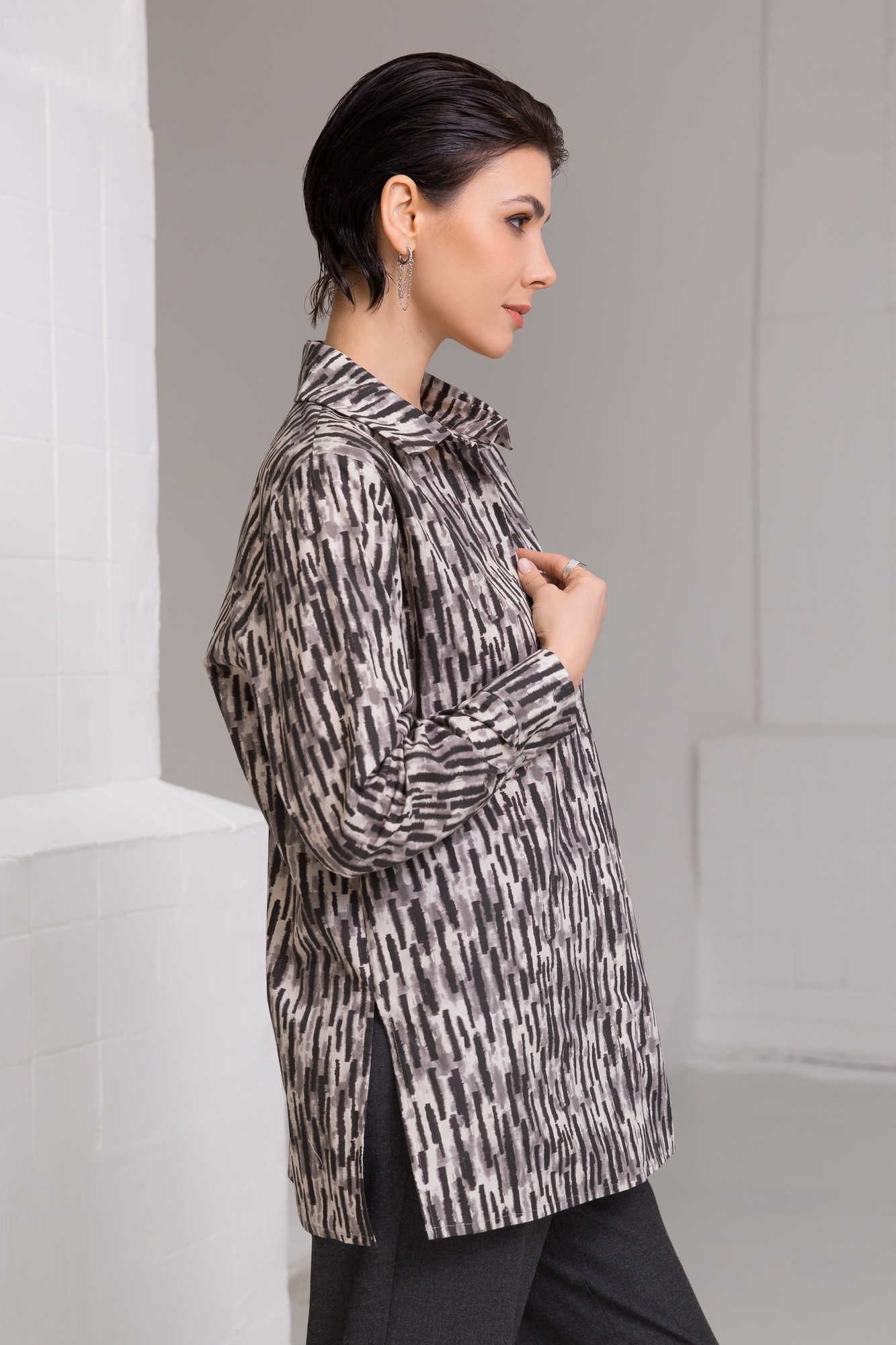 Блуза-рубашка из французского хлопка с принтом туманный граттаж.