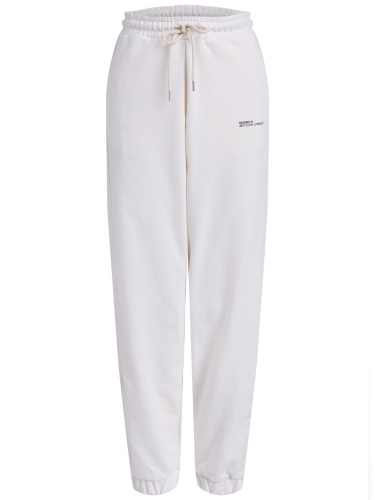 Брюки в спортивном стиле из смесового хлопка. Эластичный пояс с кулиской обеспечивают идеальную посадку по фигуре. Акцент в виде маленькой надписи на левой штанине. Длина 42 размера: 102 см. Рост модели 179 см, ее размер – 42 (российский).