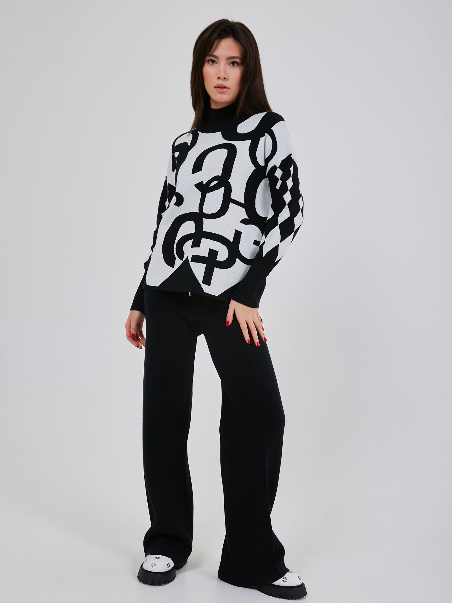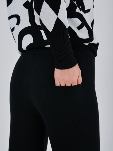 Трикотажные брюки с комфортным поясом на шнурках, дополнены небольшой стрелкой, зрительно вытягивающей силуэт. Осень-Зима'25/26. Капсула "Малахитовая шкатулка"