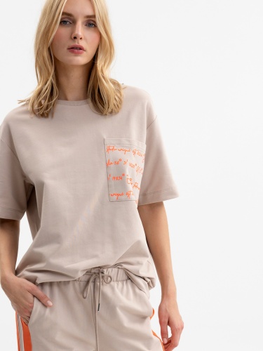 Пуловер из смесового хлопка свободного силуэта. Накладной принт на груди украшает яркий принт. Материал из 100%-го хлопка приятен к телу и комфортен в ношении. Втачной рукав. Круглый вырез горловины.