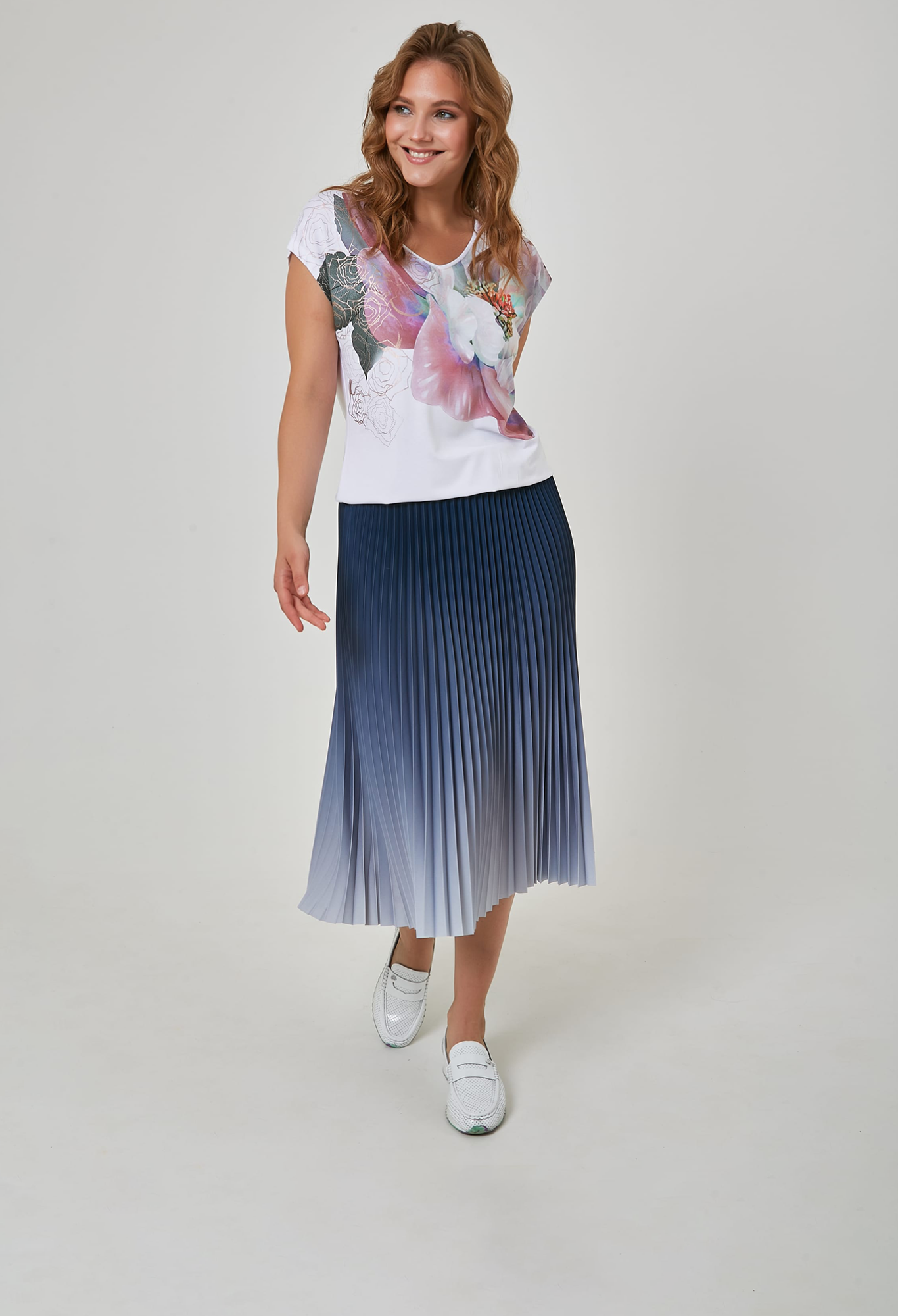 Джемпер с глубоким V-образным вырезом и флораьным рисунком.