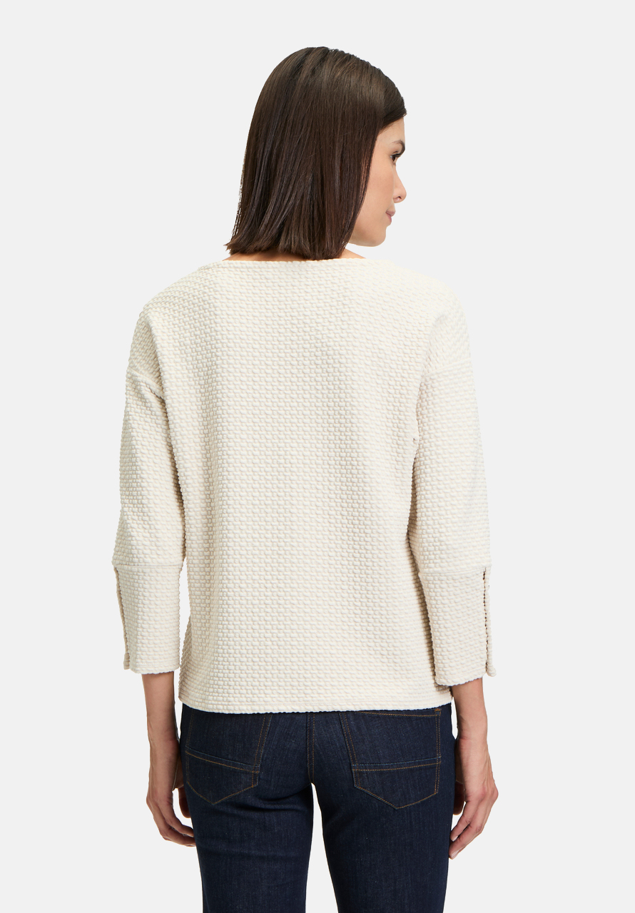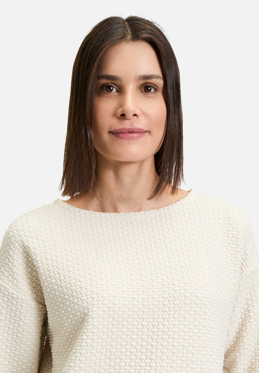 Толстовка с ее женственным и в то же время повседневным дизайном может быстро стать вашей новой любимой вещью. Свободный крой и вырез-лодочка придают изделию современный вид, а рукава 3/4 со спущенными рукавами создают непринужденный образ. Идеально подходит для создания повседневного, но стильного образа
