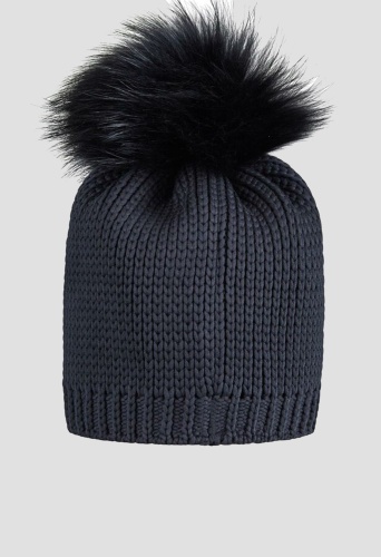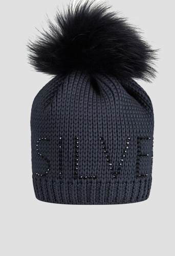 Теплая шерстяная шапка с помпоном и надписью из черных страз "SILVER"