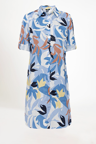 Эффектный и трендовый цветочный принт с изображением пальм по всей поверхности придает этому легкому платью тропический вид. Планка с пуговицами спереди позволяет носить это платье в закрытом или расстегнутом виде как длинную плащевую накидку поверх простой футболки или майки для повседневного образа. Имеет классический отложной воротник, закатанные рукава ¾, потайные боковые карманы и слегка закругленный низ. 100% хлопок обеспечивает комфорт, воздухопроницаемость и долговечность.