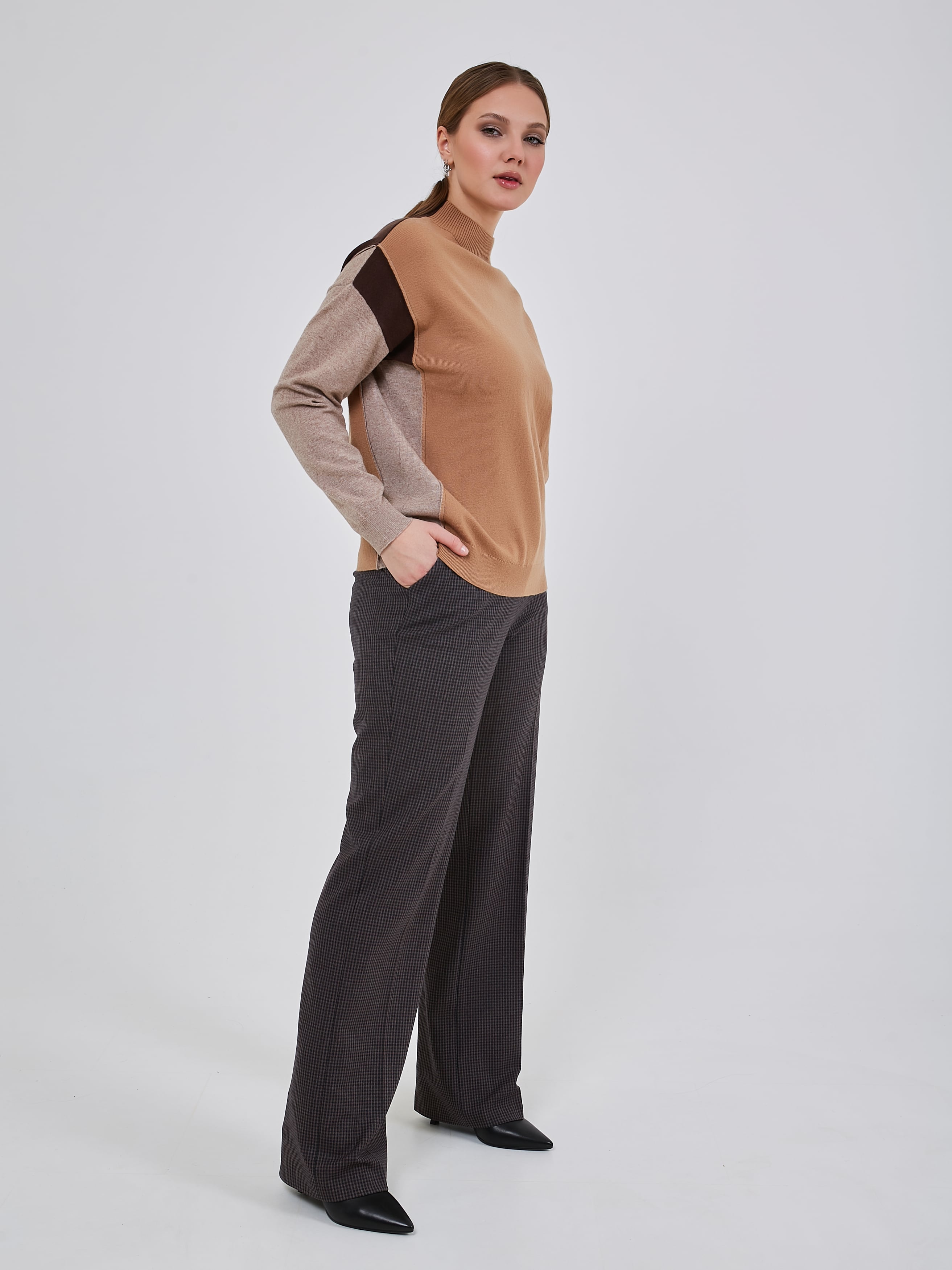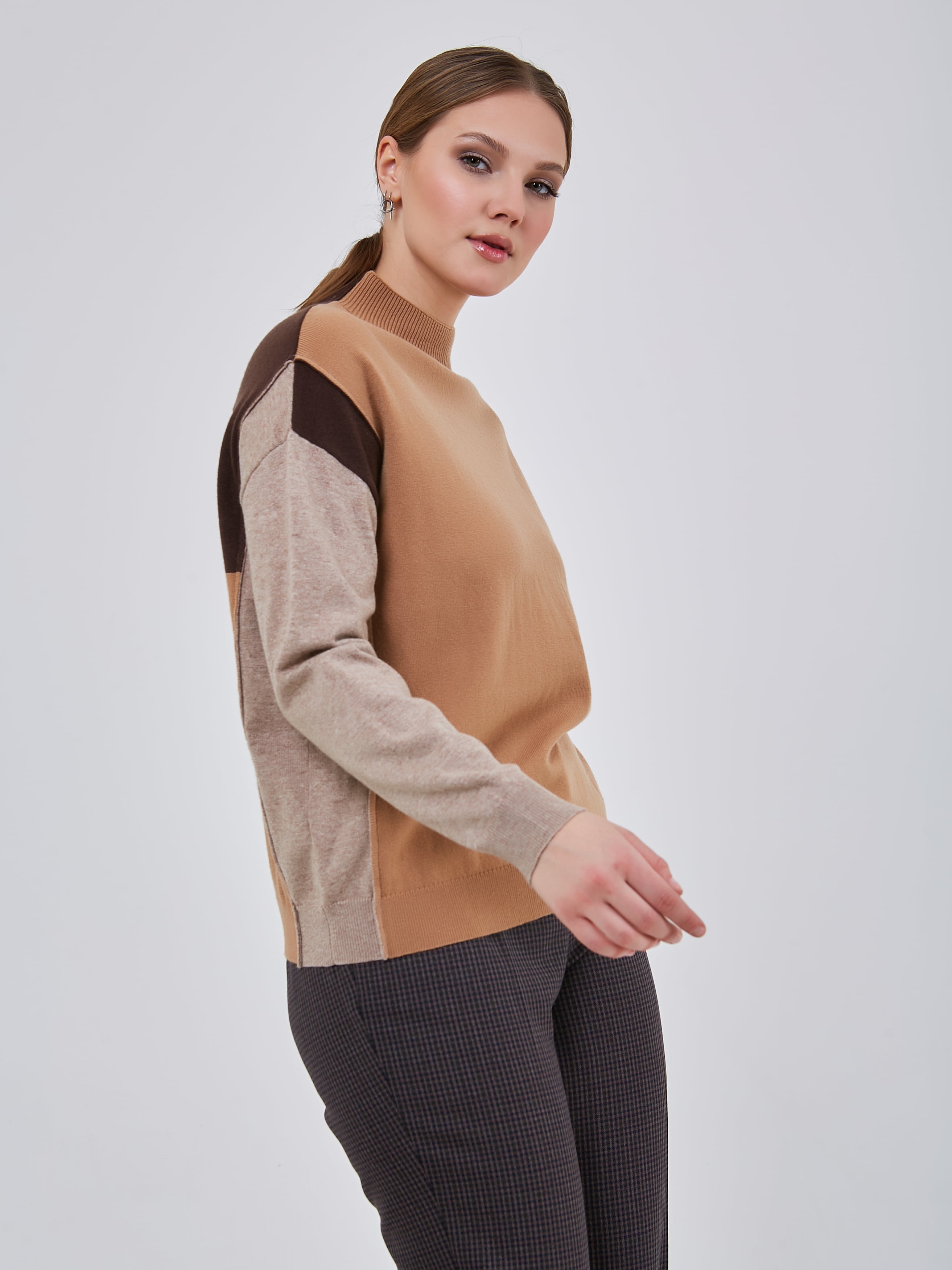 Джемпер с ассиметричным цветовым решением. Воротник- стойка эластичной вязки.Осень-Зима'25/26. Капсула "Вино из одуванчиков"