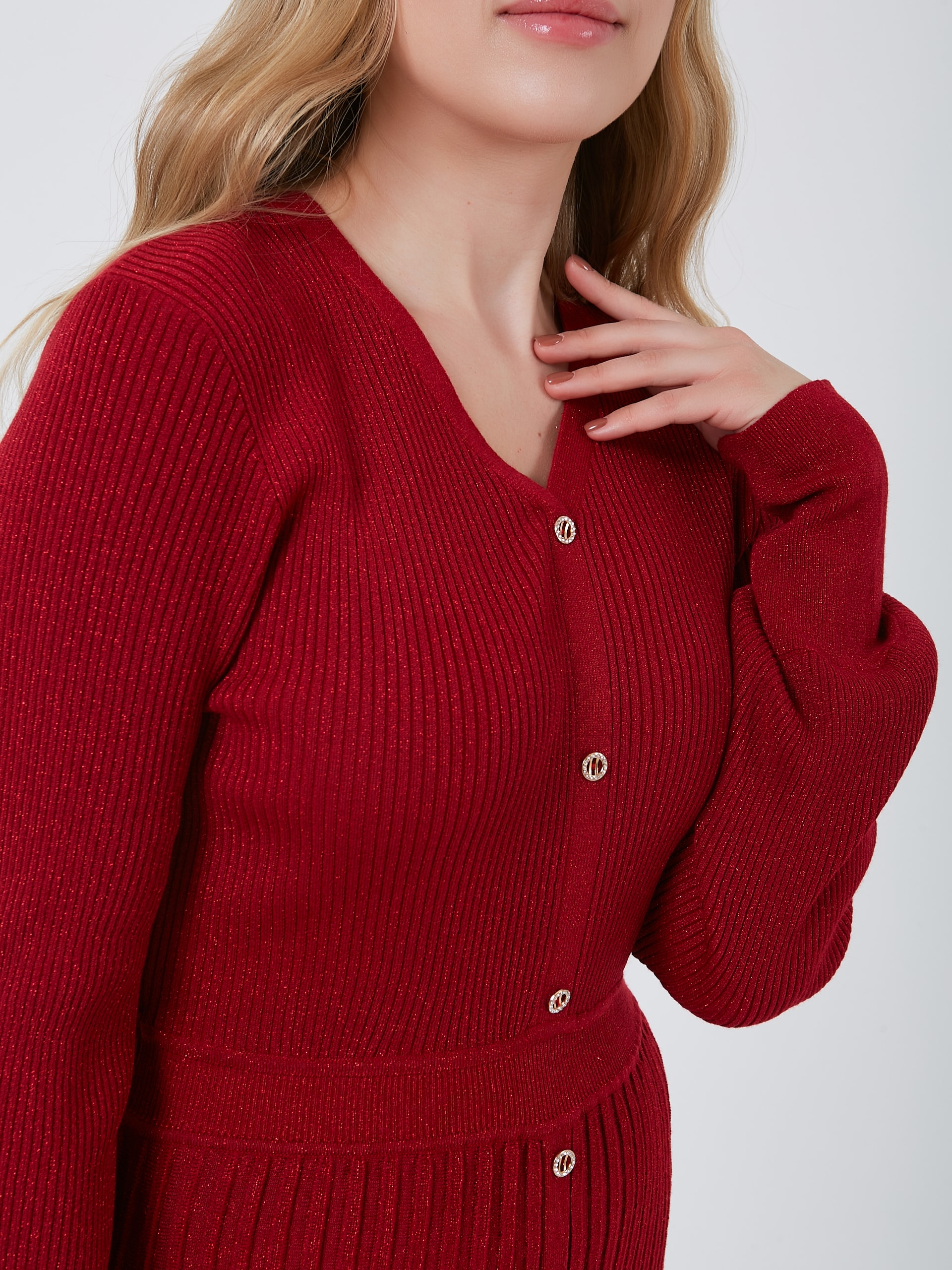 Женственное триколтажное платье карминового цвета - универсальная вещь для осенне-зимнего сезона. Осень-Зима'25/26. Капсула "Алые Паруса"