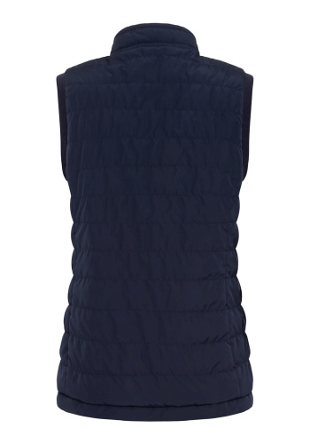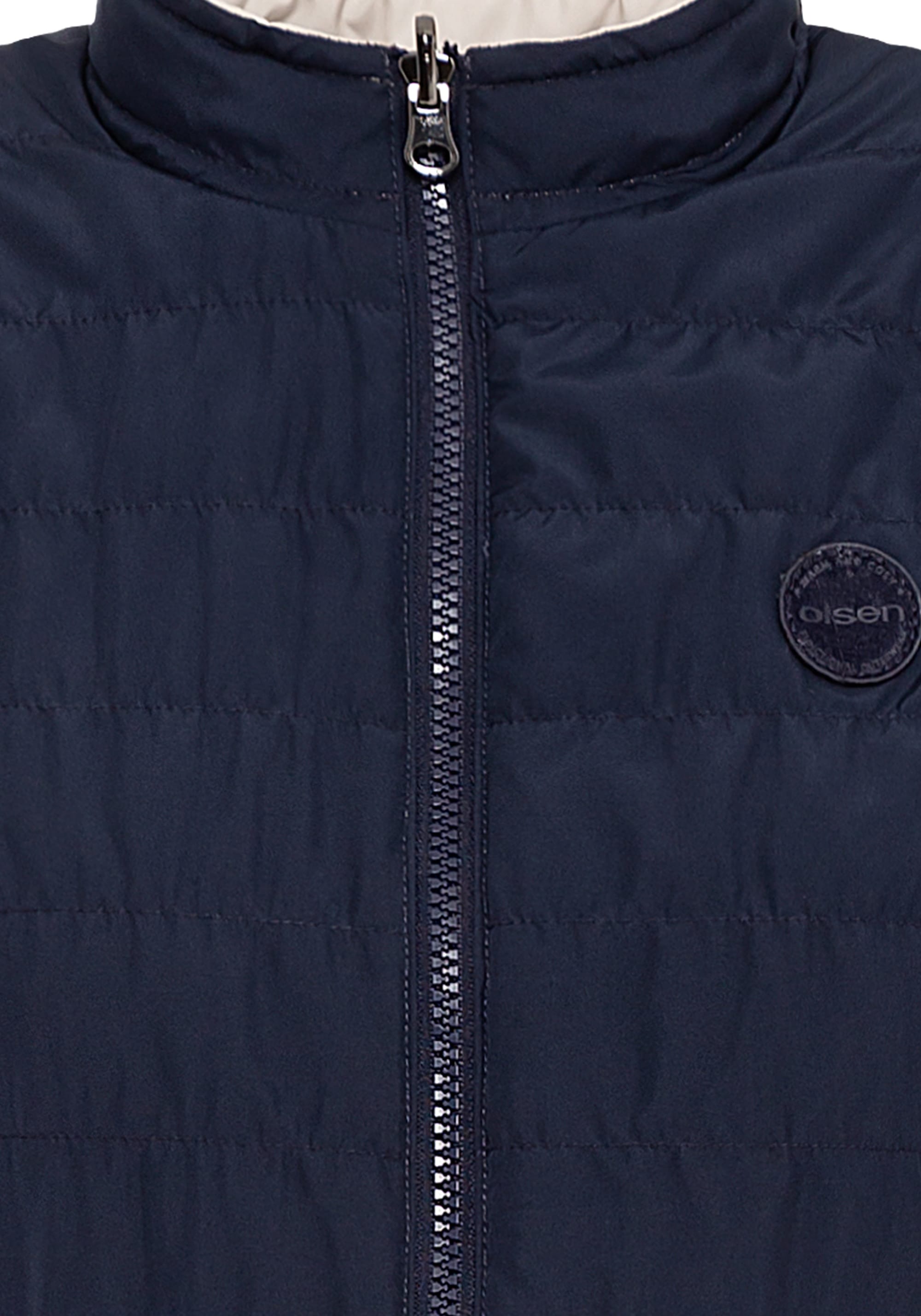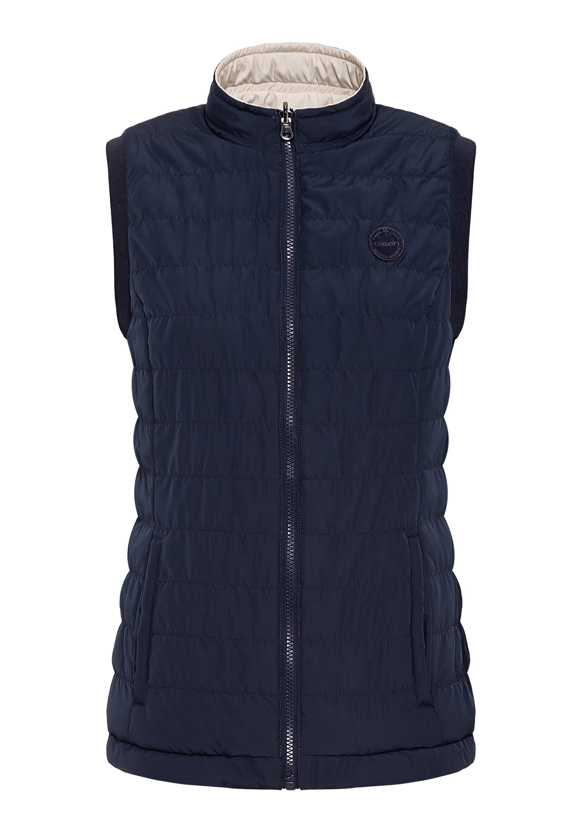 Жилет двусторонний, и его можно носить двумя способами в зависимости от вашего настроения и образа. Стильные особенности включают фирменную нашивку Olsen на груди, двойную застежку-молнию, два передних кармана на молнии и функциональные завязки на высоком воротнике. Кремовый — можно носить перевернутым, как чернильно-синий.