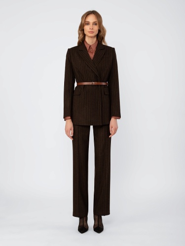 Жакет в стиле кэжуал, полуприлегающего силуэта, на подкладке. Застежка на пуговицы. Воротник английский. Рукав втачной. Карманы с клапаном. Ремень из экокожи с пряжкой.